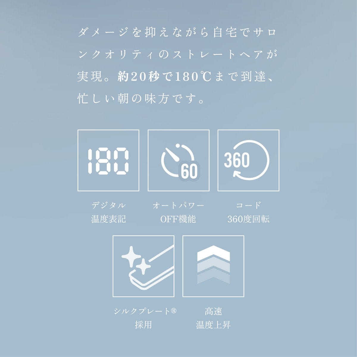 高温・保湿のシルクプレートの効果でスタイリングが長持ちします。